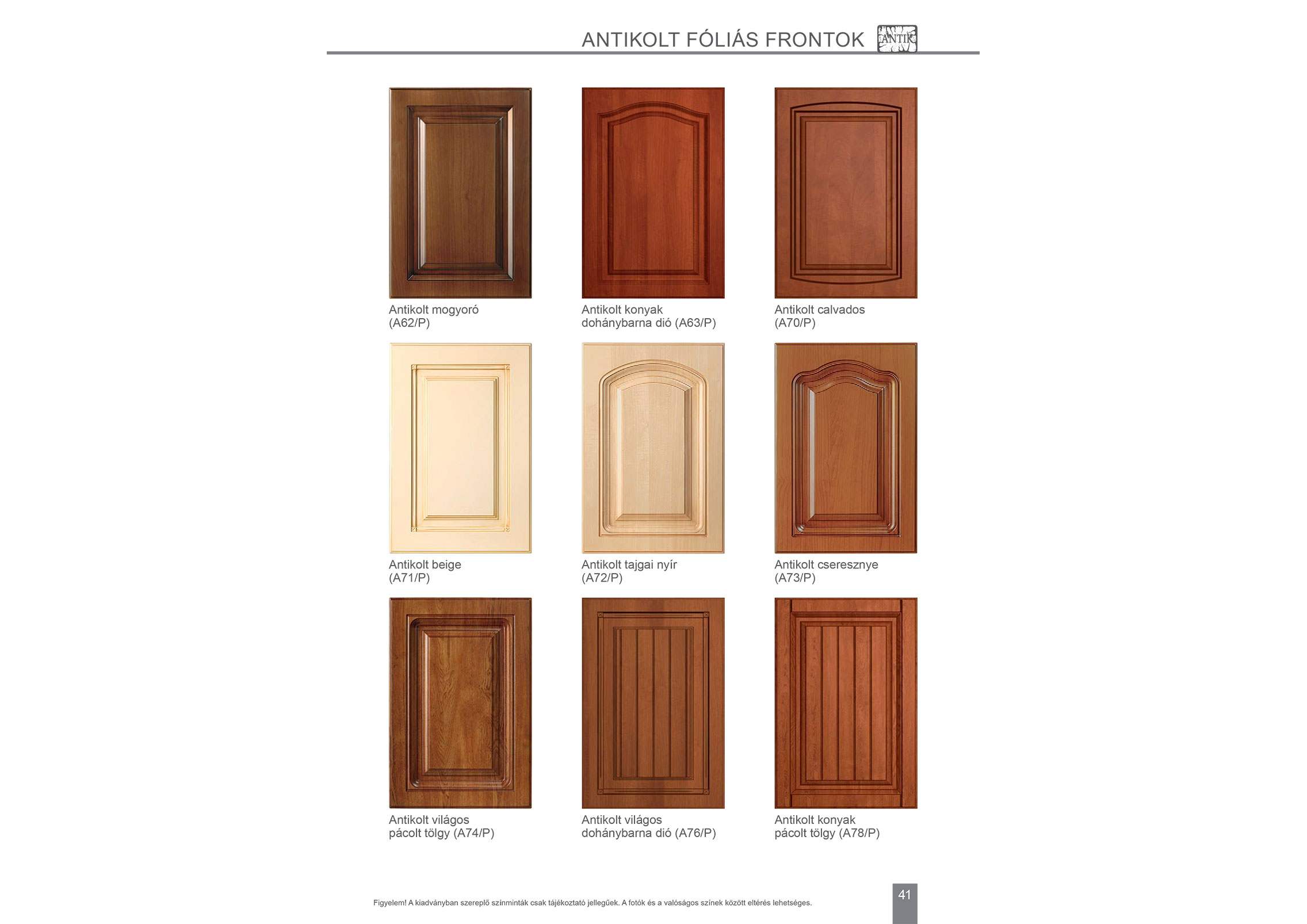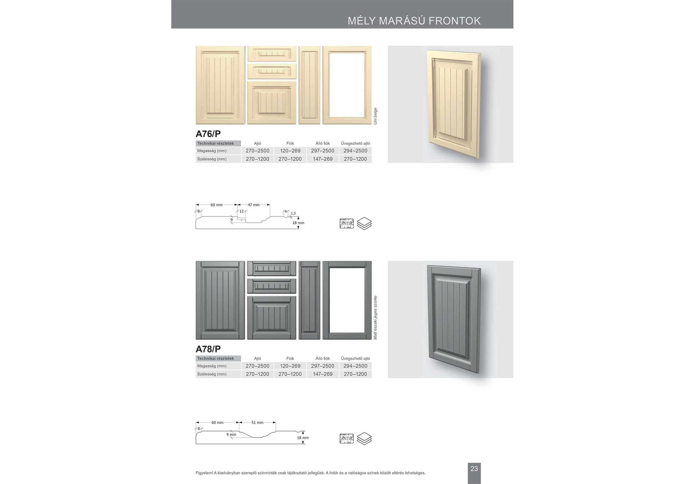 Példák szín- és ajtóváltozatokra: